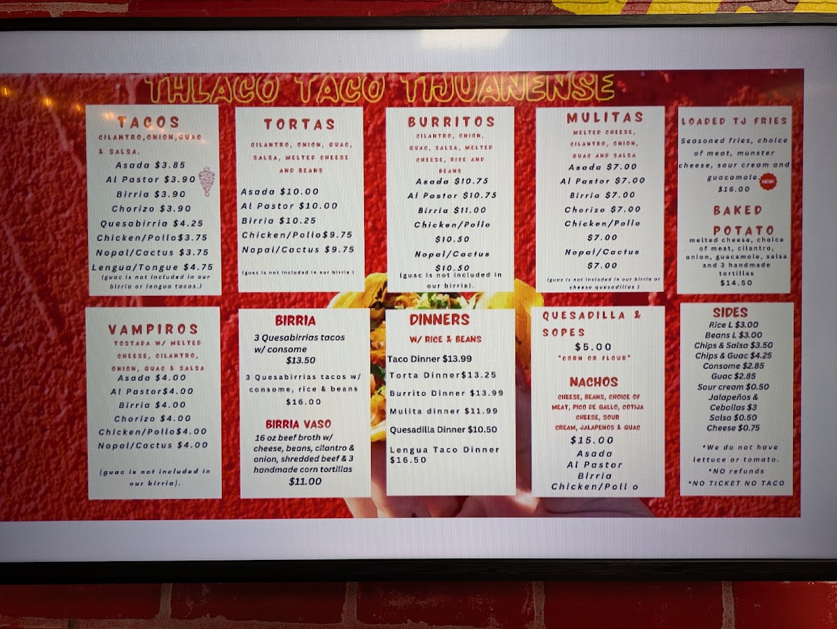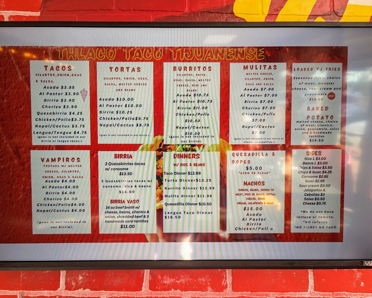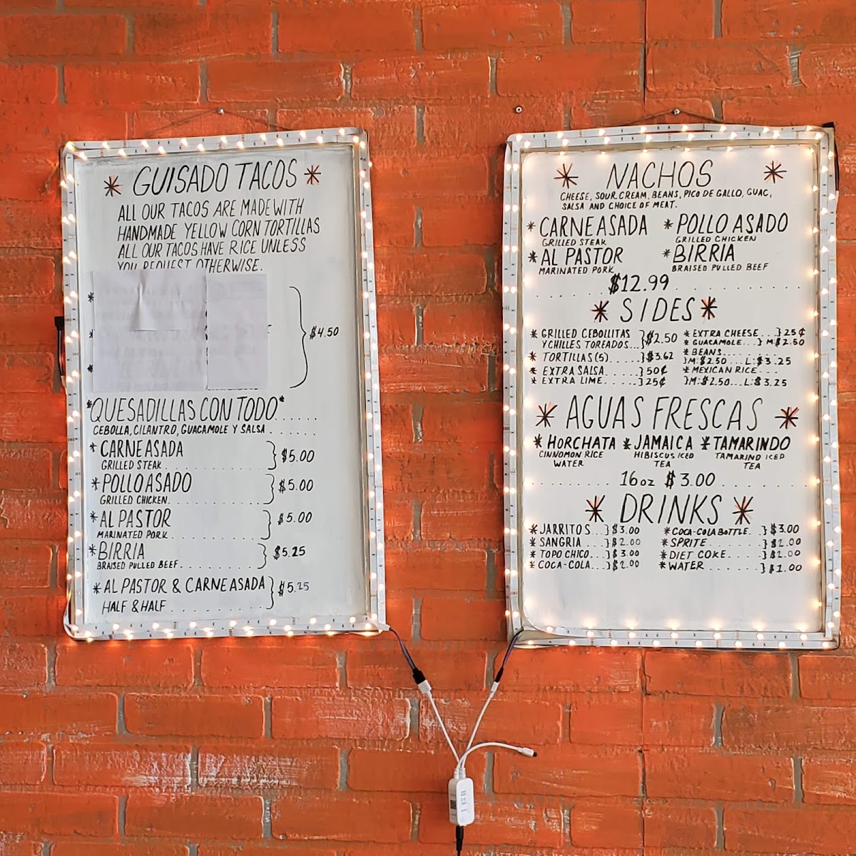 (Taco Dinner comes with 3 tacos rice and beans) -Asada taco comes with cilantro, onion, salsa and guac. -Al pastor taco comes with cilantro, onion, spicy salsa, avocado cream and pineapple. -Birria taco comes with only cilantro and onion. -Grilled chicken taco comes with cilantro, onion, salsa and guacamole. -Cactus taco comes with cilantro, onion, beans, salsa and guac. -Quesabirria taco comes with melted cheese, cilantro and onion.